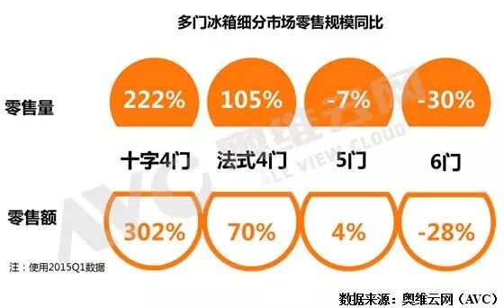 十字4門憑借著大冷凍和大冷藏,以及實(shí)現(xiàn)存儲(chǔ)精細(xì)化等內(nèi)在產(chǎn)品優(yōu)勢得到了消費(fèi)者的認(rèn)可,因此其銷售越來越好是情理之中,但能在短時(shí)間內(nèi)表現(xiàn)如此之好確是意料之外。奧維云網(wǎng)(AVC)分析認(rèn)為,十字4門表現(xiàn)優(yōu)異的外在原因主要在于以下兩點(diǎn):